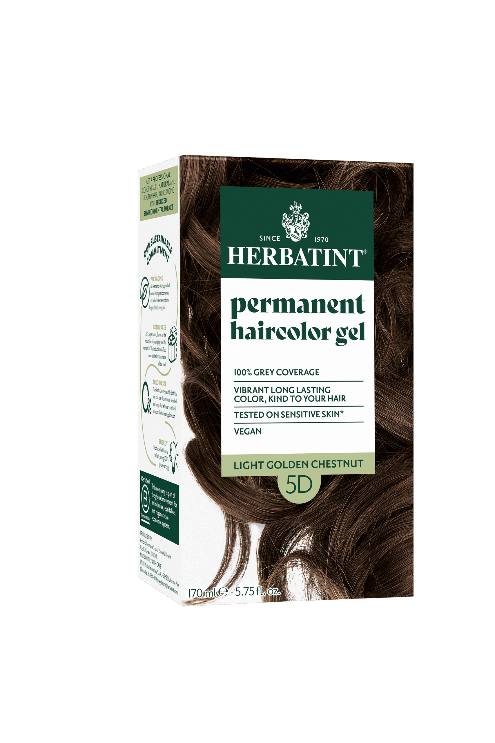 צבע שיער צמחי הרבטינט- צבע שיער קבוע במרקם ג'ל לכיסוי שיער לבן על בסיס צמחים. נטול אמוניה, רסורסינול, ללא גלוטן, בישום, סיליקונים, ניקל, פראבנים, שמן מינרלי וללא אלכוהול. נבדק דרמטולוגית ומתאים לעור רגיש.