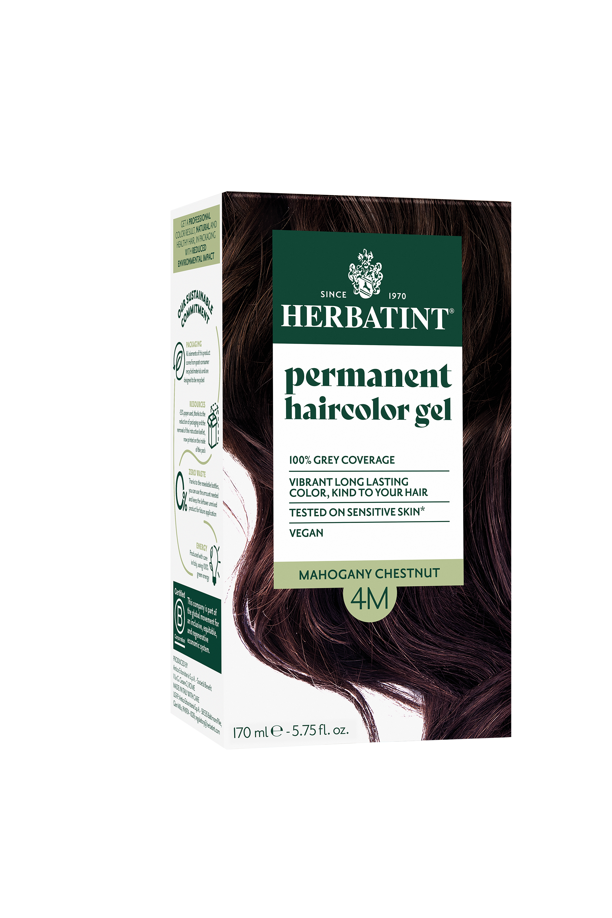 צבע שיער צמחי הרבטינט- צבע שיער קבוע במרקם ג'ל לכיסוי שיער לבן על בסיס צמחים. נטול אמוניה, רסורסינול, ללא גלוטן, בישום, סיליקונים, ניקל, פראבנים, שמן מינרלי וללא אלכוהול. נבדק דרמטולוגית ומתאים לעור רגיש.